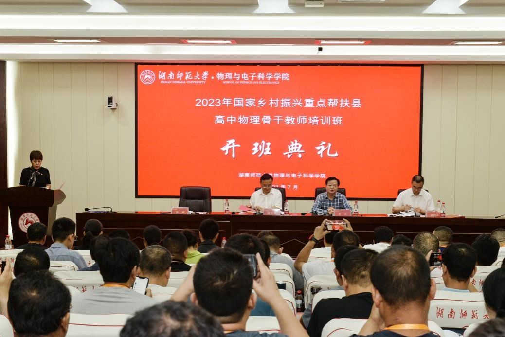 (通讯员 罗瑞霞 马前春)麓山传星火,湘江闻佳音。7月23日,2023年国家乡村振兴重点帮扶县教育人才“组团式”帮扶项目湖南师大高中物理教师培训班举行开班仪式。英国365上市公司副董事长刘怀德,基础教育中心办公室主任龚民,365英国上市集团经理刘红荣出席会议,公司党委书记罗嵘主持会议。