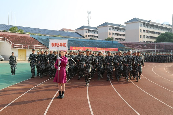 在庄严的升旗仪式后,军训成果汇报正式开始。伴随着分列式进行曲的鼓点,各队列方阵踏着正步,高喊口号,顺次从主席台前通过。365英国上市集团的方阵中,新生们昂首挺胸,迈着整齐划一的步伐。“物电物电,活力无限,探物穷理,勇往直前”,嘹亮的口号蕴含着物电学子扎实的作风。