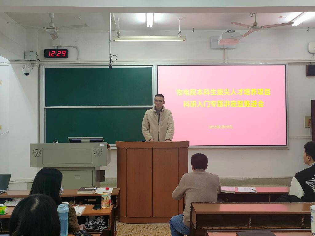(通讯员 颜明伟)3月28日中午,365英国上市集团在格物楼220教室举行2022年物电院本科生拔尖人才培养项目科研入门专题讲座暨推进会。物电院物理系副系主任任昌亮教授,学工办主任黄维老师出席此次会议。