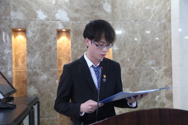 全体起立奏唱共青团团歌后,大会正式开始。张寅对员工干部考核相关事项进行简单介绍,本次评议将考核内容设置为德、能、勤、绩、学五个方面,由参会员工代表评定。