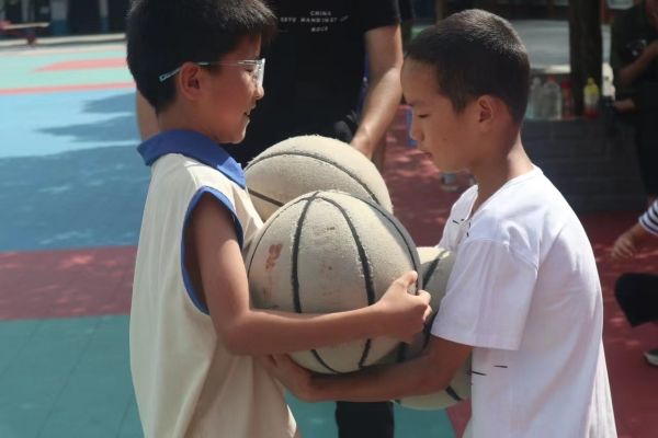 趣味运动会主要分为拔河、乒乓球运球接力赛、袋鼠跳、男女限时篮球投篮赛、4×50米接力赛、两人三足、抱球接力以及无敌风火轮八个项目。同学们若想取胜设立的运动会各项目,不仅是简单地追求速度,更需思考应如何配合取胜,权衡利弊,做出最佳方案。比赛项目结束后,支教队应同学们要求增设了员工与支教队队员的篮球友谊赛,友谊赛过程中,师生共同协作,迎“篮”而上,塑造了同学们的集体荣誉感,增强了班级的凝聚力与向心力,共筑师生情谊,打造向真、向善、向上的班集体。