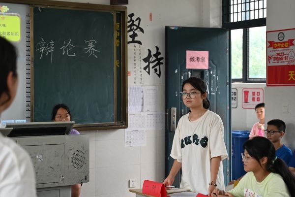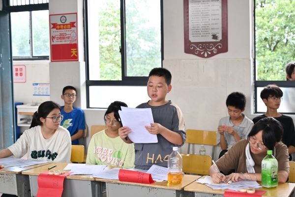 (通讯员 涂月华 段楚楚)7月24日下午,本着重在参与,公平竞赛的精神,为了丰富同学们的课余生活,张扬自我个性,活跃公司气氛,物电院“灿箬百星”支教队联合世承书院“薪火予你”实践团于白箬中学开展班级对抗辩论赛。此次辩论赛由“灿箬百星”支教队队员刘慧熙主持,“灿箬百星”支教队队员白蒙浩,李承锦与“薪火予你”实践团成员谢湘萍,张子聪担任评委。