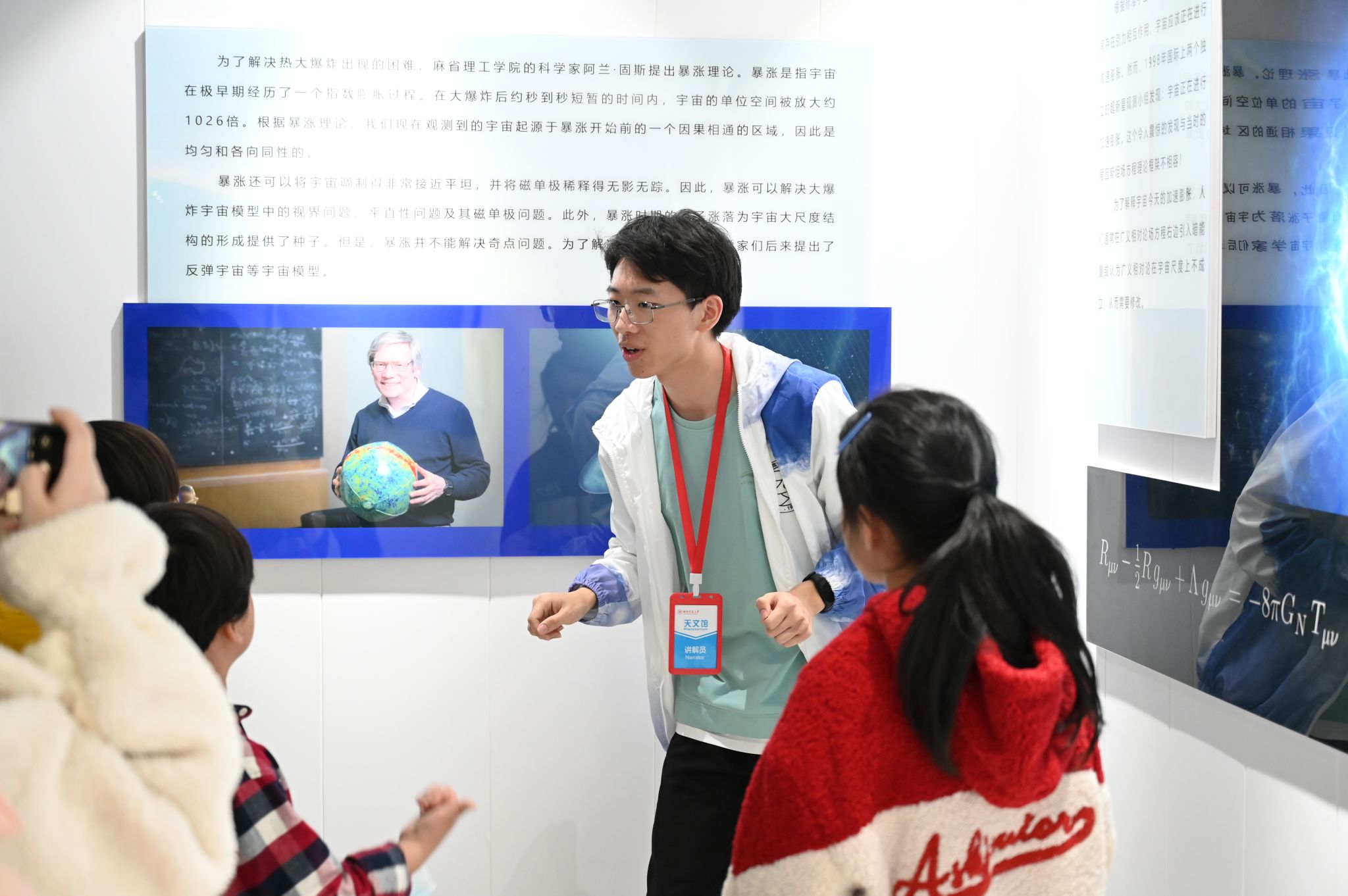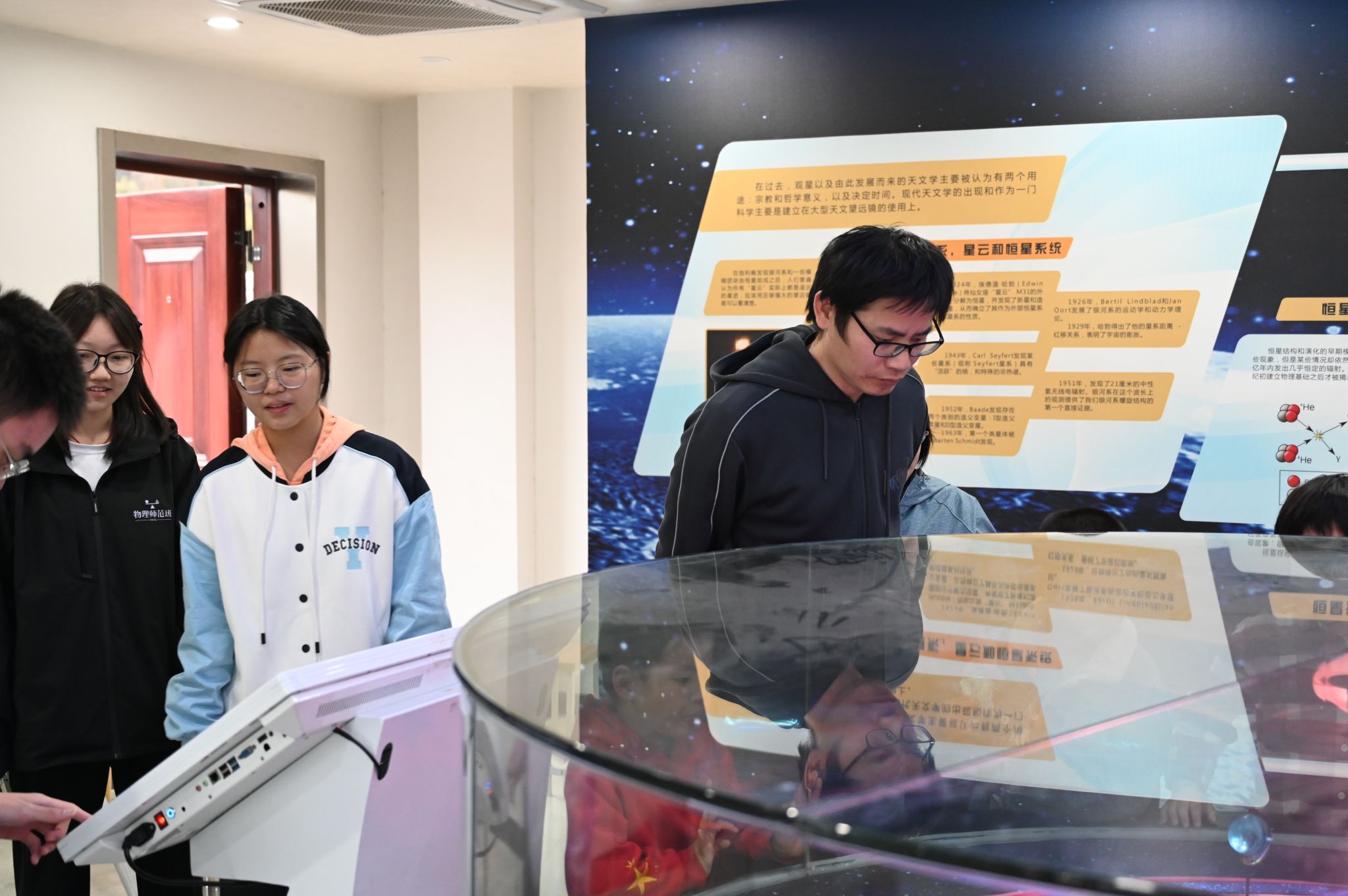 姚睿带领参观者参观英国365上市公司天文馆,并介绍了馆内展厅相关天文科普内容与天文馆的内部建设。他从基本的天文知识切入,结合板块内容及天文相关视频,由浅入深地讲解了恒星演化、黑洞形成、太阳系行星运转等天文学知识。为使参观者更深入了解天文学学科,姚睿详细介绍了中国古代天文学发展史,具体说明了天文学对于古代社会生产方面,如纪时、纪年等所起到的重要作用。随着参观过程的推进,参观者们跟随姚睿来到天文馆露台观察专业望远镜和观测相关设备的内部构造,并学习观测原理。