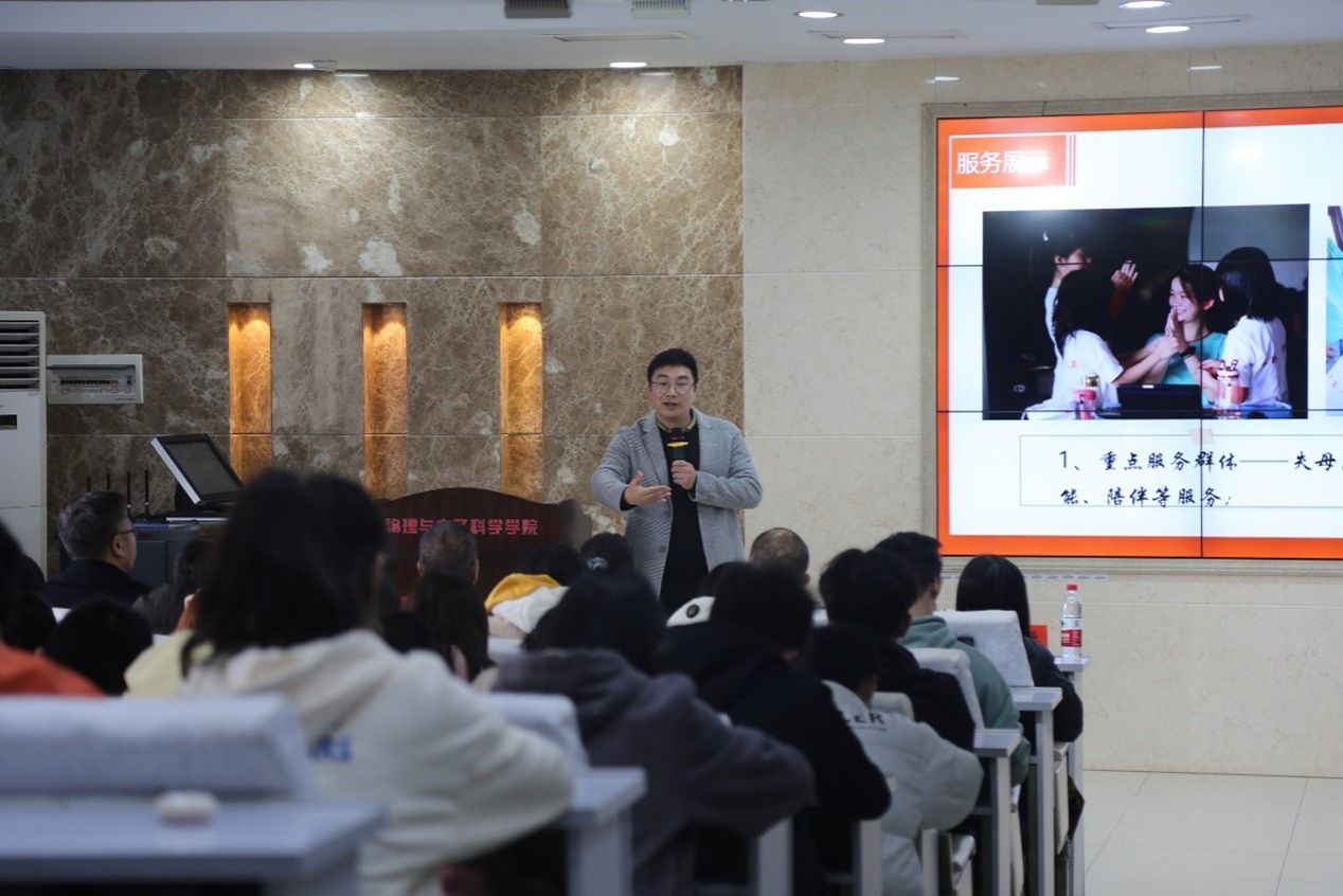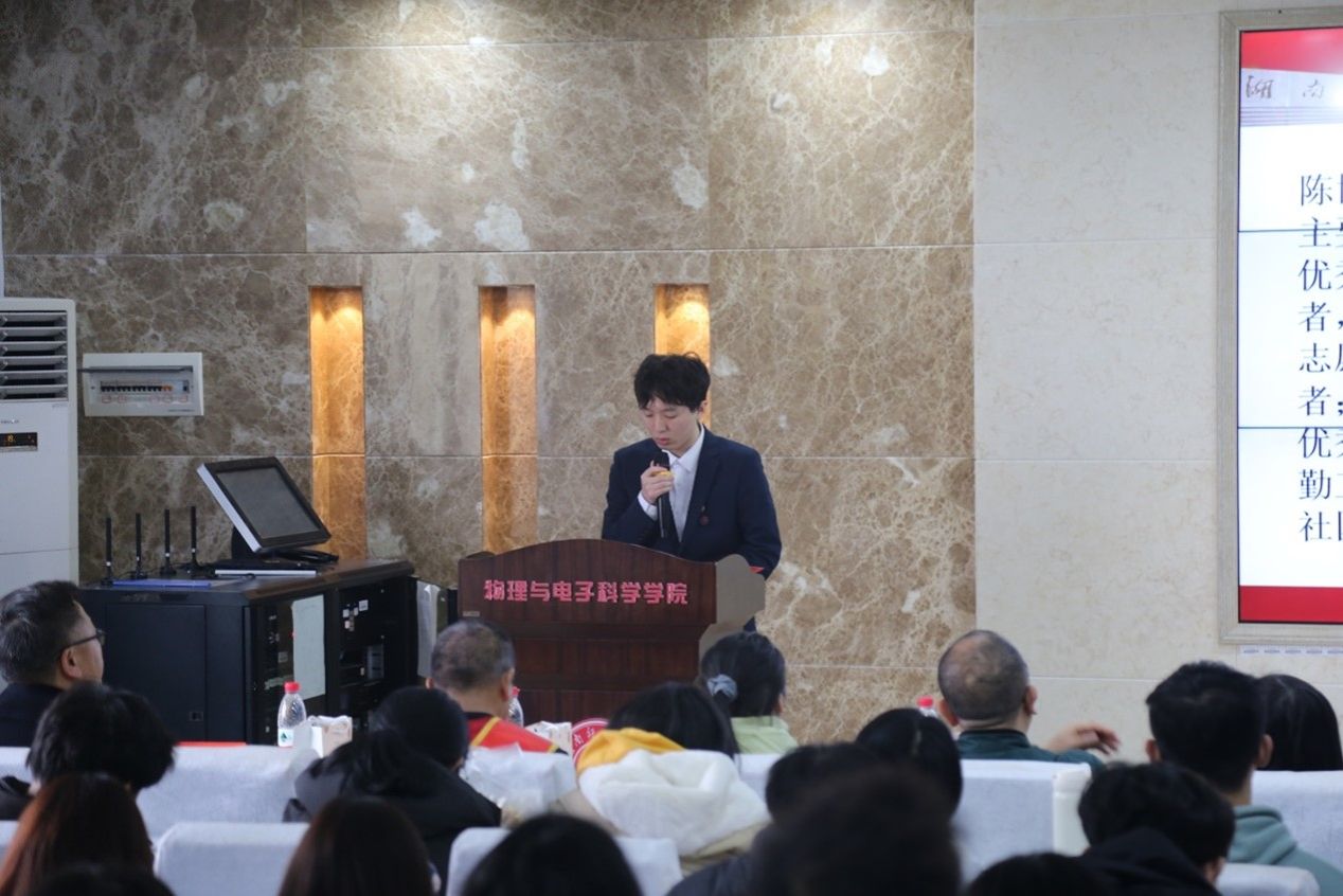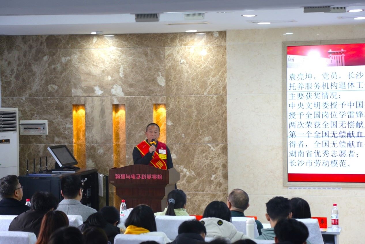 (通讯员 谭烨茜 段楚楚)12月14日中午,物电院团委青年志愿者工作部于理公司509报告厅开展“爱心献社会,真情暖人心”志愿者精神宣讲会。湖南省科学技术馆公众服务部部长周辉军,长沙市博爱阳光家园残疾人托养服务机构退休工作人员袁亮坤(中央文明委授予中国好人,中共中央宣传部授予全国岗位学雷锋标兵),暖心社工机构总干事周平,物电院2021级员工陈博担任主讲人。物电公司党委副书记郭铭伟担任点评嘉宾,2023级员工党伟莎担任担任主持人。