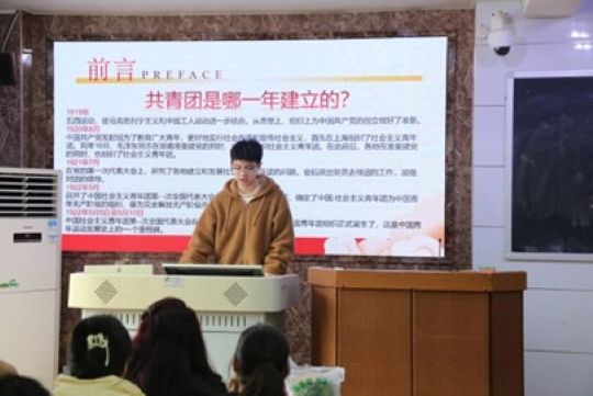 肖骏以中国共产主义青年团成立背景以及中国近代史的四个重要时期入题,并详细介绍了社会主义青年团时期和共产主义青年团时期的四位有志青年:第一个明确提出成立共产党的蔡和森、创办《中国青年》的恽代英、谱写《义勇军进行曲》的聂尔、领导工人运动的李启汗,使员工更好体会青年一辈在社会发展历程中所发挥的巨大作用。申思疑则向学员们讲解了新民主主义青年团时期和中国共产主义青年团时期的四位爱国青年:用生命换取胜利的黄继光、一生为人民服务的雷锋、帮助贫困乡村的张海迪、张桂梅女士。通过介绍中国近现代有为青年的人生经历,申思疑点明任何一个社会都离不开前辈的指引,更离不开后辈的奋起直追的主旨,她从思想,学习,生活三方面告诉学员们要树立远大理想,确立正确的“三观”、珍惜青春,发奋学习,积极进取,在思想上入团,做同学学习的榜样。