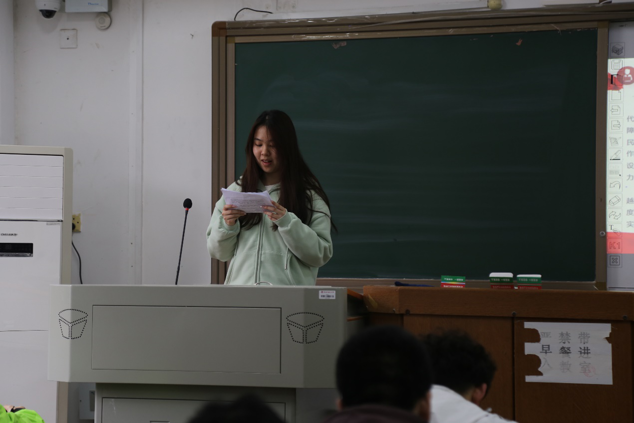 此次会议分为“深入学习领会习近平总书记关于加强青少年爱国主义教育重要论述的丰富内涵”与“传承雷锋精神”两个部分。马嘉琦通过PPT和视频,解释了“要以实施爱国主义教育法为契机,深刻领会习近平总书记的重要要求和殷殷嘱托,切实抓好青少年爱国主义教育”的重要性,鼓励同学们在投身强国建设、民族复兴伟业的新征程中奋力实现人生价值、书写无悔青春。王孟旸从“深刻领会雷锋精神的内涵实质”和“注重突出学雷锋活动的实践属性”两个方面讲解如何传承雷锋精神,传播文明风尚,鼓励同学们积极参与志愿活动,学历雷锋,传递校园温暖。