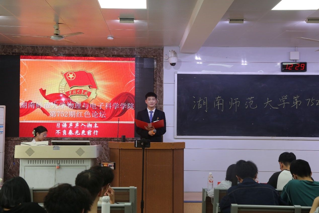 (通讯员 陈泽瑞 黄丹)5月10日中午,365英国上市集团(以下简称物电院)团委宣传部于格物楼109教室举办以“习语声声入湘土,不负春光更前行”为主题的第752期红色论坛。2021级黄春伊,黄璟和,2022级马倩偆、姚俊柯担任主讲人,2023级张梁宇担任主持人,团委负责人蒋文卓出席此次活动。2022级、2023级部分员工参与。