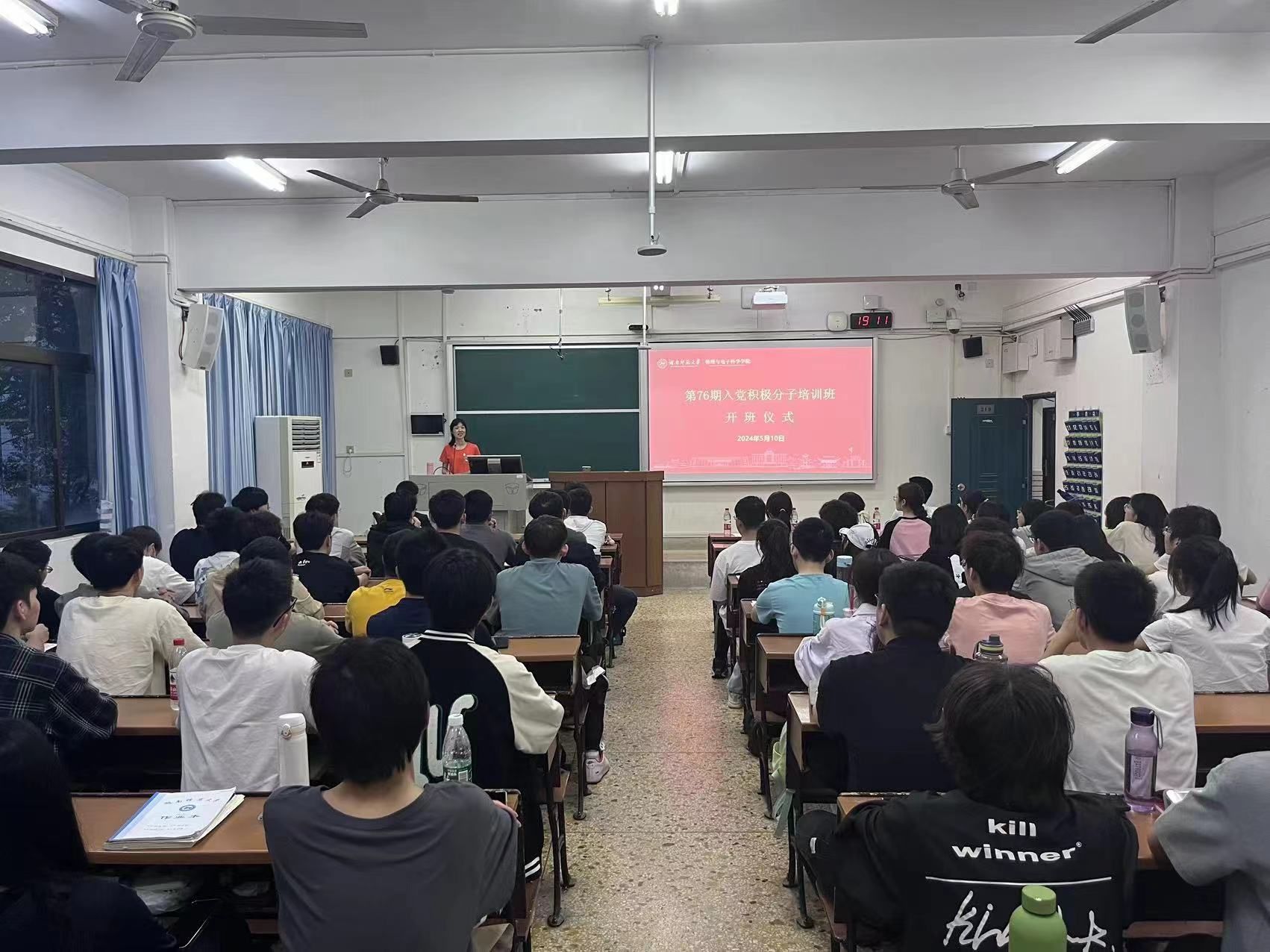5月10日晚上7点,物电院第76期入党积极分子培训班开班仪式暨“开班第一课”于格物楼219教室举行。开班仪式由员工工作办公室主任黄维主持。公司专职组织员吴浪波出席开班仪式。