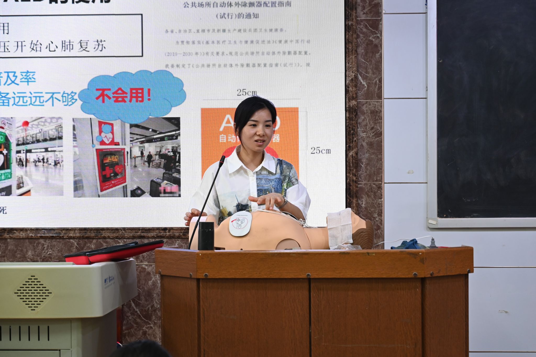 唐文丹讲解自动体外除颤仪的使用方法
