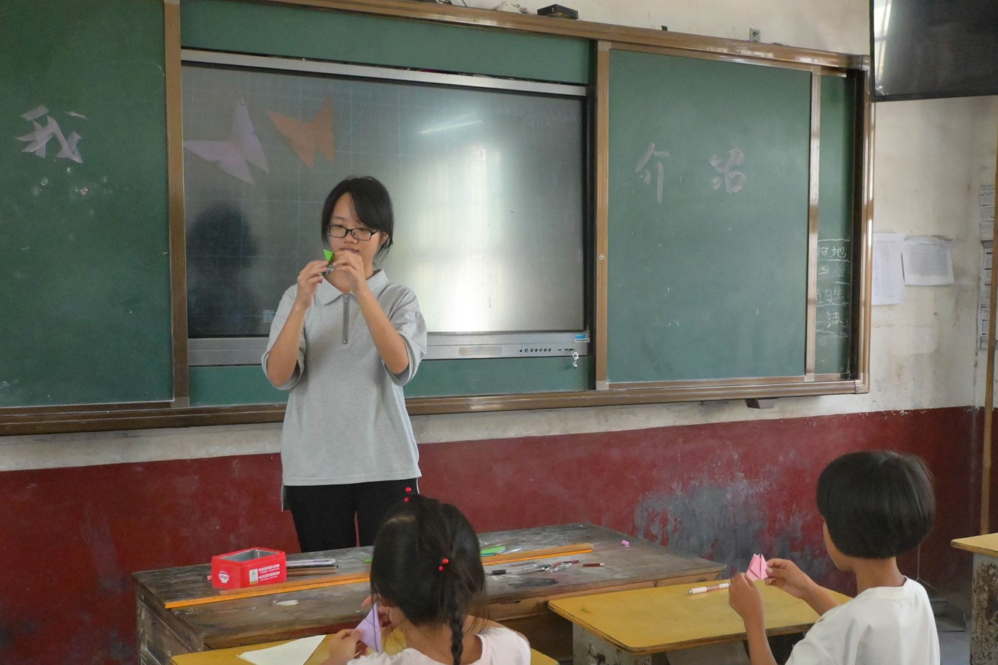 支教队成员韦雪桢和周湘丽分别为两个班级教授折纸。他们给员工播放折纸教学视频,亲手展示每一个折纸步骤。员工们跟随韦雪桢和周湘丽的教学,成功将卡纸折成了爱心和蝴蝶的形状。部分员工将折纸作品作为礼物赠予其他支教队成员。