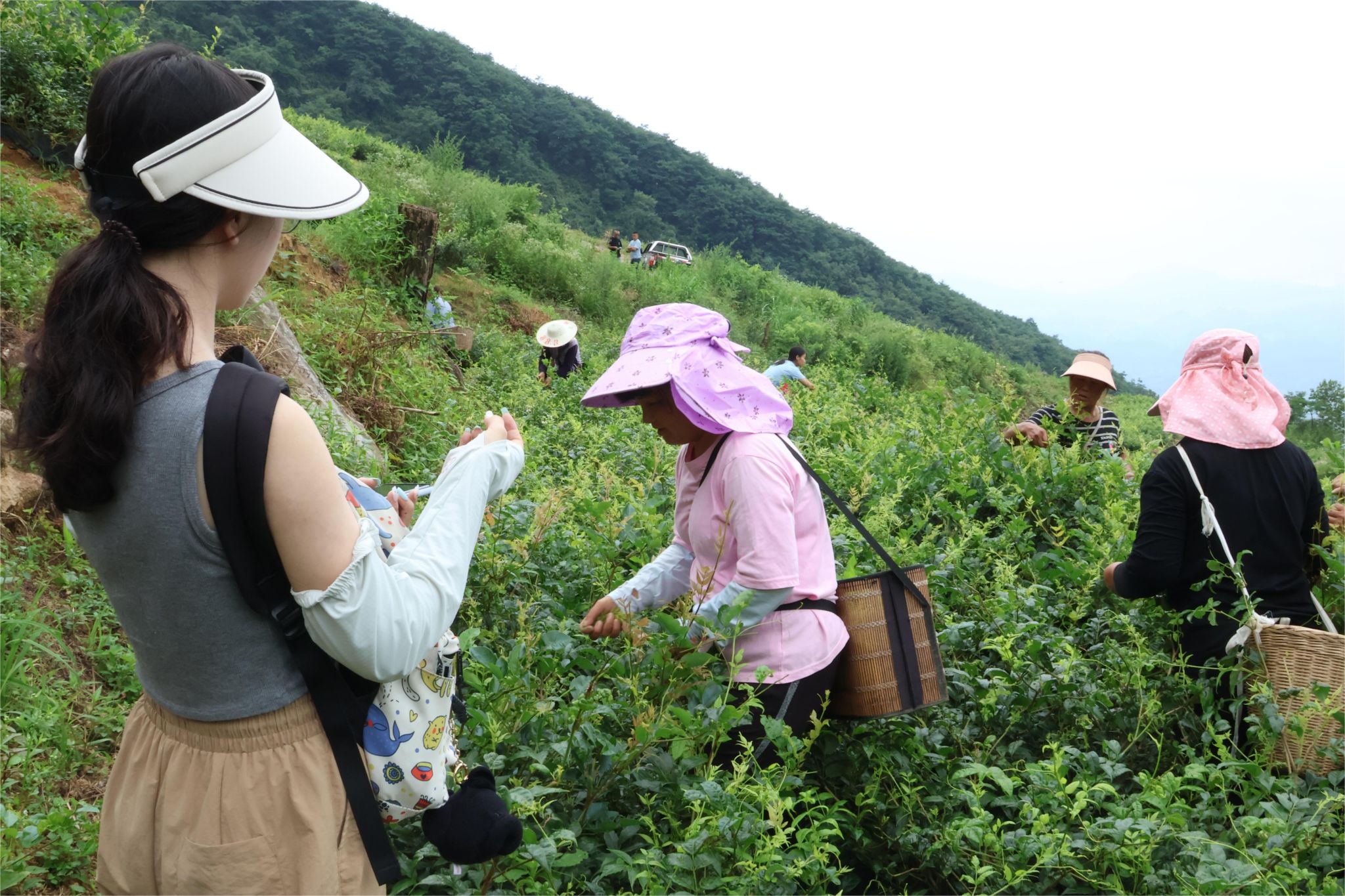 丁先春带领服务队成员来到福耳界莓茶基地,进行莓茶采摘加工过程的参观。实地参观过程中,宣传组成员对莓茶的采摘及加工过程进行了拍摄,调研组成员对采茶人员及车间加工人员进行了提问并记录在册。参观结束后,调研组成员围绕莓茶的生产、宣传、销售、加工方面与丁先春进行交流,获得了较为详细的相关信息。