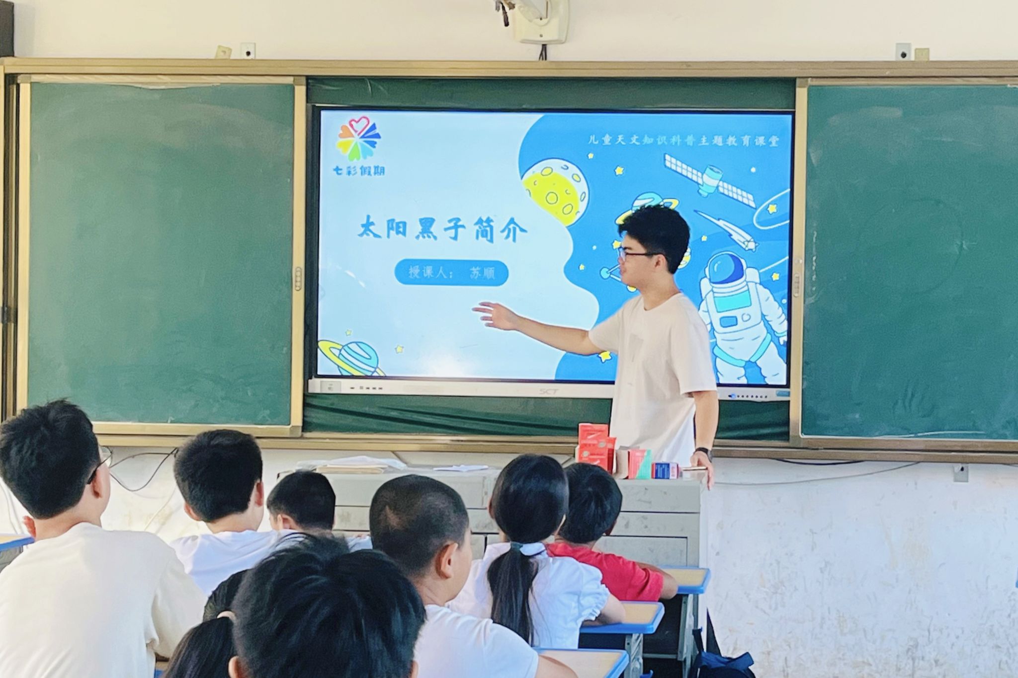 (通讯员 张婧怡 何梓如 罗荔彤)7月19日上午,365英国上市集团三下乡“筑梦星辰”社会实践团于娄底市双峰县桥亭中学开展“太阳黑子”天文课堂。社会实践团队员苏顺担任主讲人。