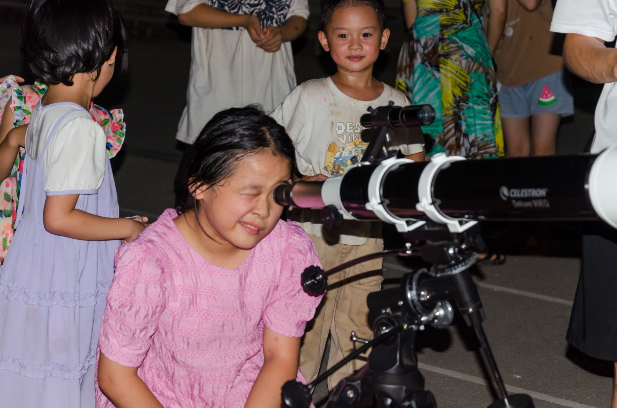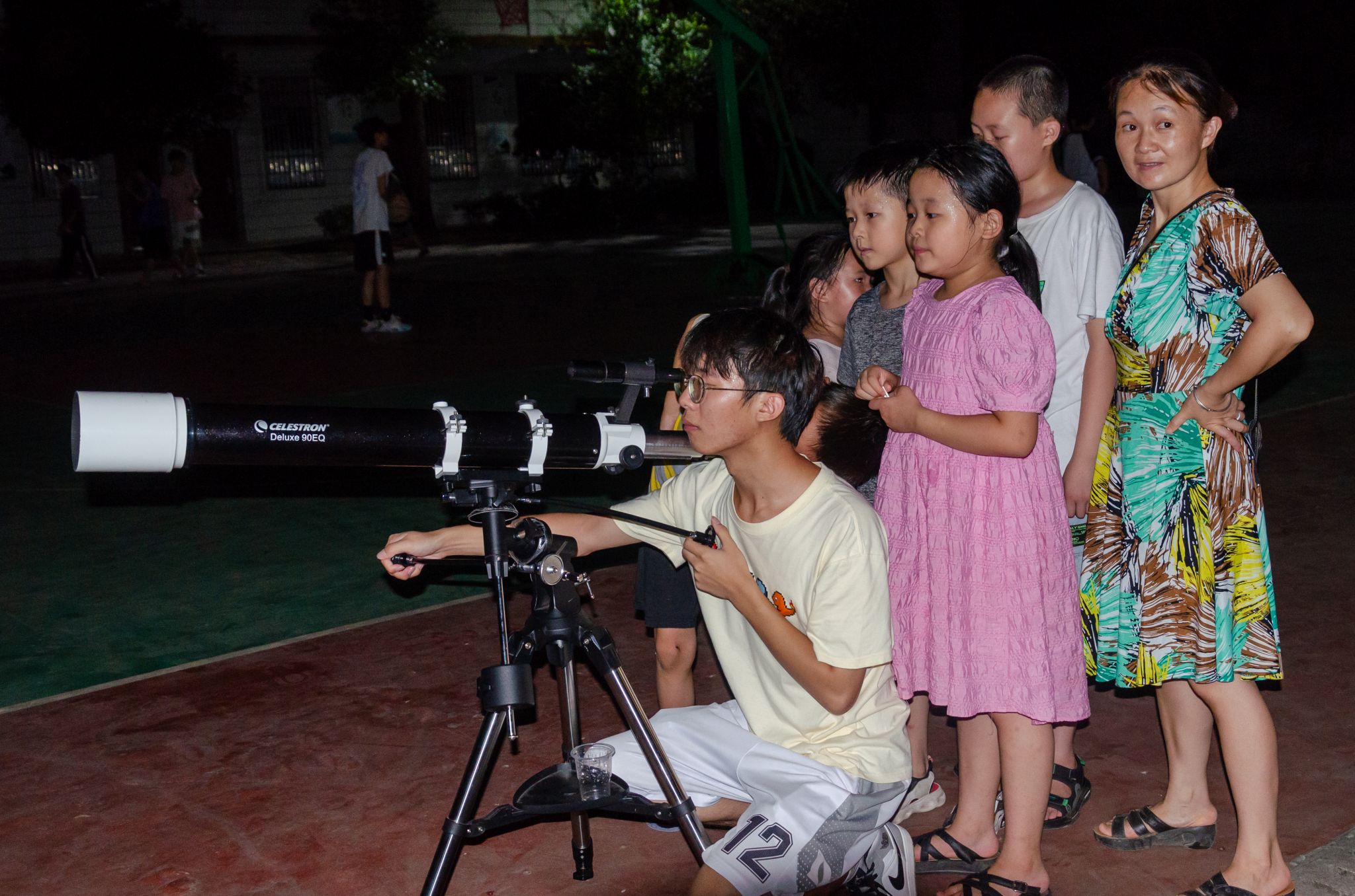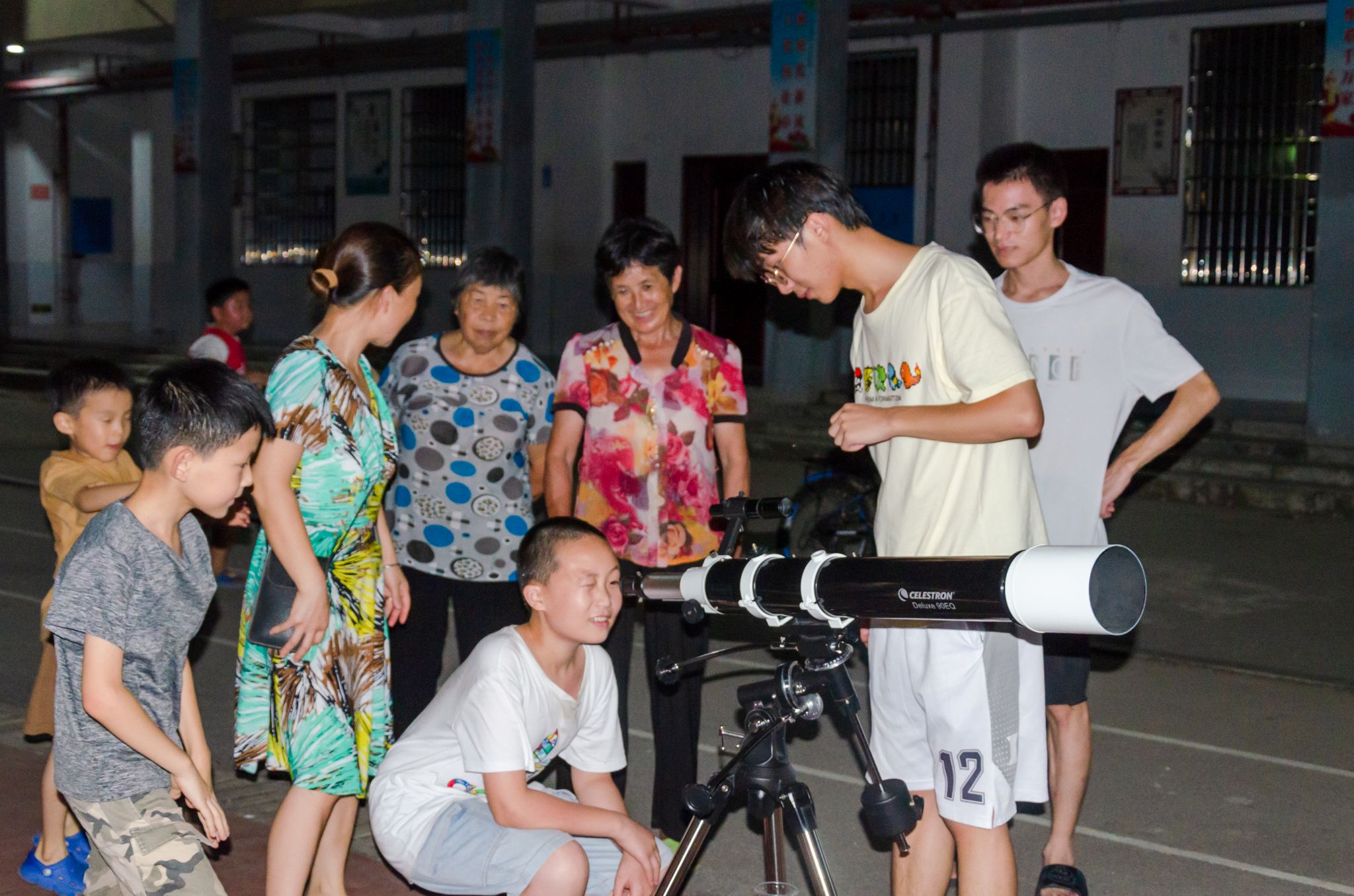 为了确保活动的专业性和趣味性,实践团特别从天文馆借用了两架高性能望远镜,为桥亭中学的同学们和当地村民提供了一次难得的天文观测体验。活动中,实践团成员充分发挥专业优势,带领大家通过望远镜近距离观测月球。活动现场气氛热烈,不仅桥亭中学的同学们积极参与,许多村民也闻讯而来,共同体验天文的魅力。实践团成员不仅指导大家如何使用望远镜,还耐心地向同学们和村民科普天文相关知识,如月球的特点、星座的故事等,使大家在轻松愉快的氛围中学习到科学知识。