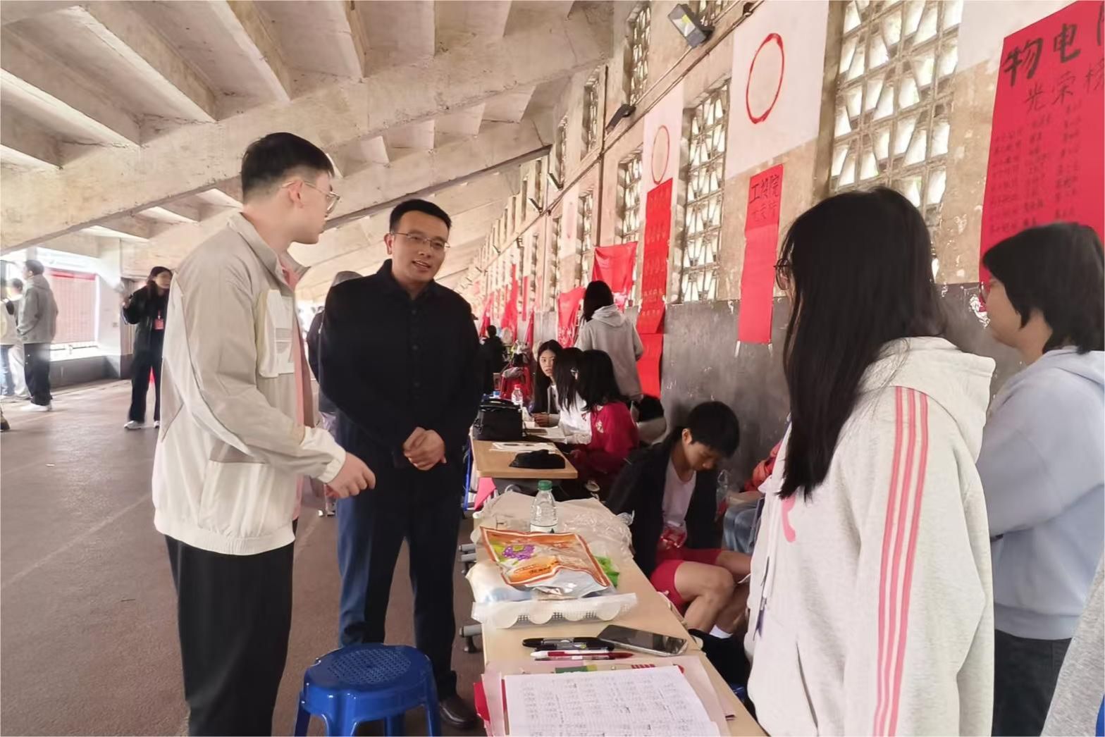 校运会期间,公司党委书记罗嵘、党委副书记郭铭伟及学工办辅导员老师亲临赛场,慰问了参赛运动员和后勤志愿者。罗嵘特别提醒志愿者们要密切关注运动员的身体状况,确保赛前赛后的各项服务周到细致,为运动员们提供坚实的保障,彰显物电学子团结互助、追求卓越的精神风貌。郭铭伟副书记对运动员们展现出的奋勇争先精神给予了高度评价,激励大家不仅要赛出个人风采,更要赛出高水平,体现出物电学子勇于超越自我的坚定信念。老师们的亲切慰问极大地鼓舞了运动员和志愿者的士气,使他们更加坚定了为公司赢得荣誉的决心。