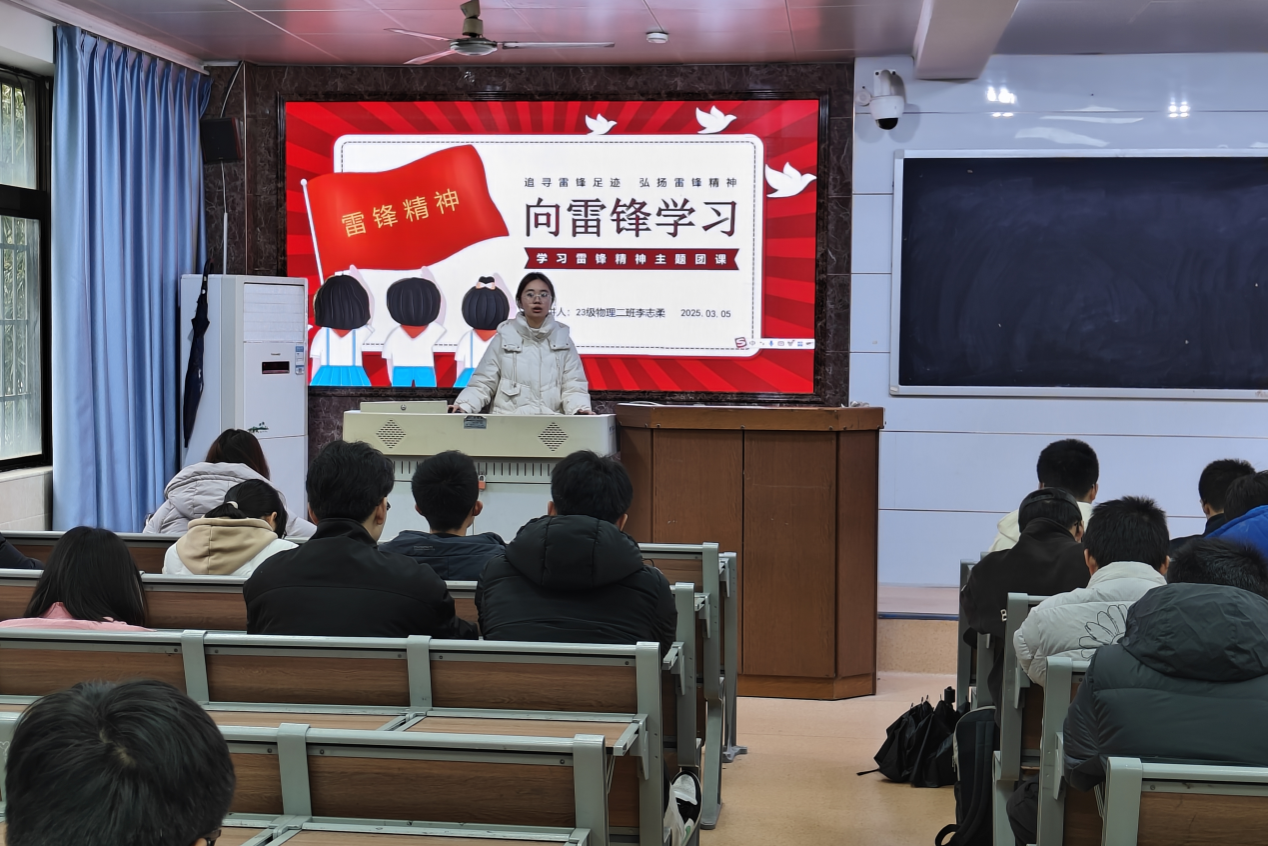 李志柔详细介绍了雷锋的生平事迹。她谈到,雷锋以乐于助人、大公无私和对工作的精益求精闻名,成为许多人心目中的榜样。李志柔带领同学们重温了雷锋的经典语录,如“人的生命是有限的,而为人民服务是无限的”“我要把有限的生命,投入到无限的为人民服务之中去”等,这些名言不仅激励了在场同学,也让他们深刻体会到了雷锋精神的时代价值。同时,李志柔结合物电院团委青工部近年来在志愿服务领域的成果,号召同学们积极发扬雷锋精神。