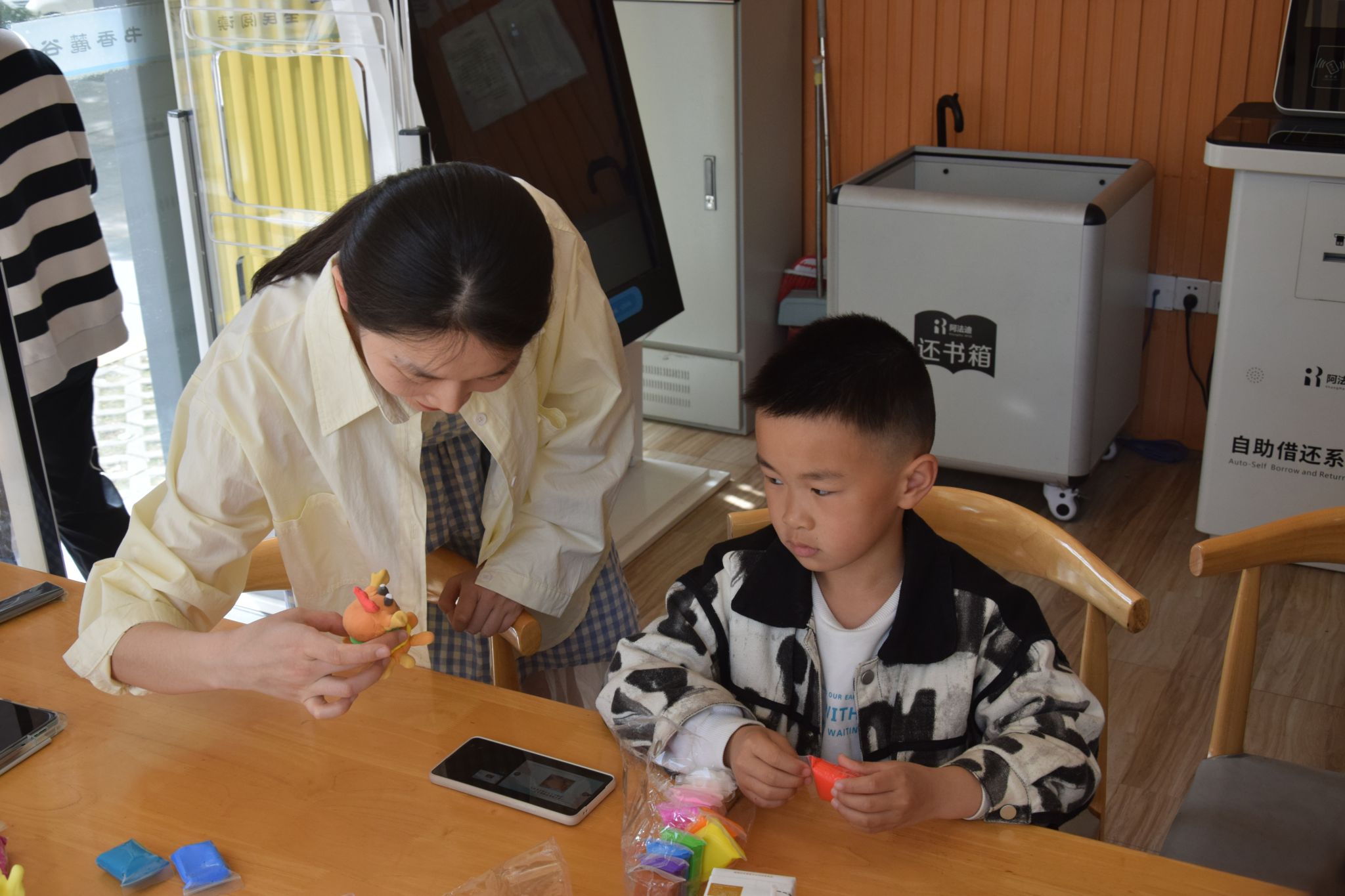 手工环节中,孩子们在志愿者的帮助下用彩色粘土制作出形态各异的小螃蟹。从揉捏椭圆身体到拼接钳子、点缀眼睛,每一步都充满童趣。在朱栗萱的鼓励下,不少孩子还创作了“汉堡包”螃蟹、平底锅煎螃蟹等作品,现场洋溢着创造与分享的喜悦。