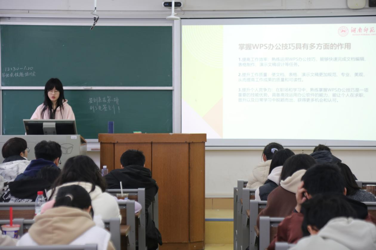 此次技能培训大会的内容包括办公软件WPS的使用方法与视频剪辑的技巧。朱忆晗介绍了WPS文档编辑的快捷键,如何高效应用查找与替换功能以及删除空白页的实用办法和格式刷的高级应用。葛梦雨分享了视频剪辑的实操经验,她从构思,选材,操作过程以及实际操作四个方面展开详细讲解,加深了参会成员对视频剪辑的了解。