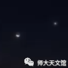 3月2日19时左右的西方天空,太阳系中最亮的两颗行星——金星与木星近距离相合,此时金星和木星最近时角距只有33′,相当于一个满月的直径。它们肩并肩“凑”在一起完成一个完美的拥抱。