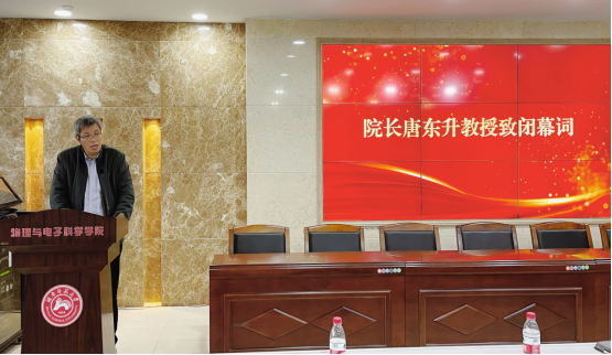 经理唐东升教授致闭幕词,他对各位代表的支持表示感谢。他指出,这次会议是在全院师生员工深入学习贯彻落实党的二十大精神,公司建设和发展都处在关键时期召开的一次重要会议。他同时强调了教代会在发挥教职工智慧,凝聚教职工力量方面的重要作用,希望代表们在习近平新时代中国特色社会主义思想的指导下以助推公司事业高质量发展为主线,以立德树人为根本,进一步推动全体教职工以时不我待的精神和建功必定有我的担当,以扎实的工作成效检验学习宣传贯彻党的二十大精神成效。