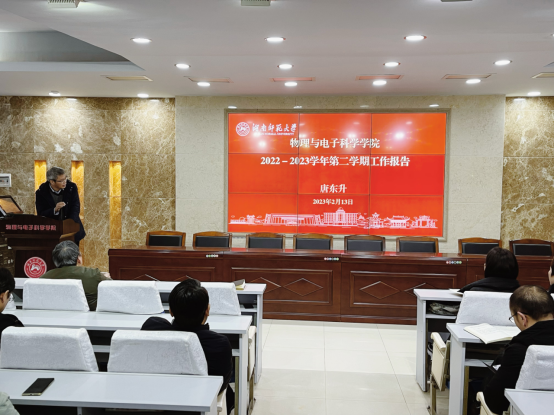 2月13日下午,公司在格物楼509报告厅召开2023年新学期教职工大会,总结2022年公司工作,并对新学期各项工作进行了全面部署安排。校纪委书记姚春梅教授,原副董事长、低维量子结构与调控教育部重点实验室主任匡乐满教授出席会议,会议由副经理李友明主持。