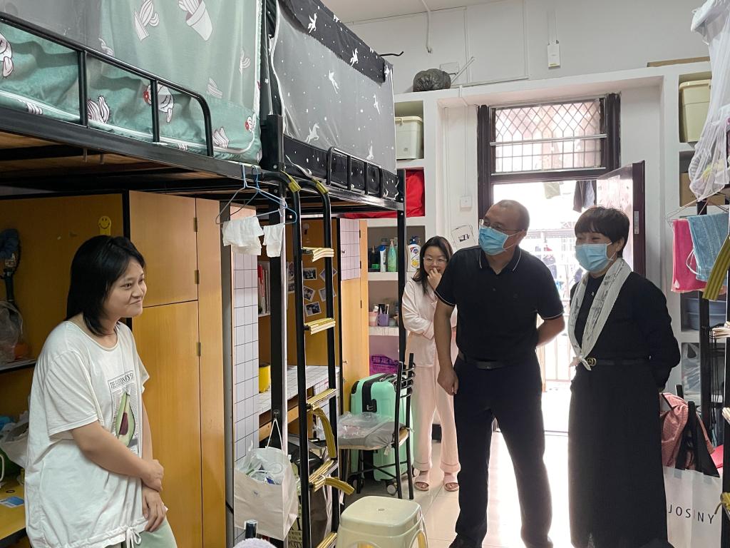 走访过程中,老师们与同学们亲切交谈,叮嘱大家要严格遵守公司疫情防控期间的各项管理规定,按时整理宿舍内务卫生,养成早归的良好习惯;要定期开窗通风,做好宿舍消杀,营造健康生活环境;要安全用电,杜绝使用大功率电器,确保人身财产安全。期间,着重查看了毕业生寝室,亲切关心毕业生的就业、考研等情况。