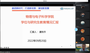 物理学科负责人唐东升教授分别从学科简介、培养目标、研究方向、学制与学习年限、培养方式、课程设置与学分要求、学术论文发表、学位论文、经典文献书目和文献目录等方面对物理类研究生新生进行了详细的介绍。
