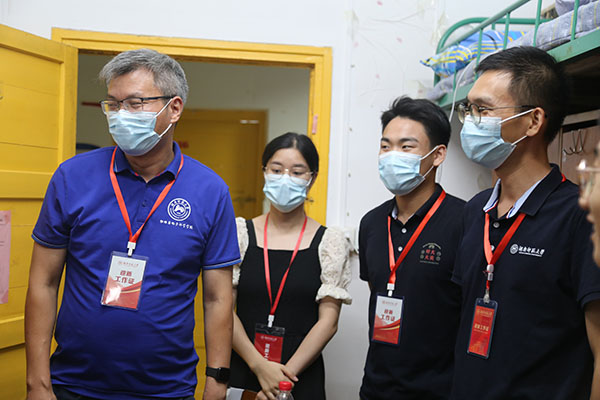 在走访中,院领导与同学们亲切的交谈和问询。“来自哪里呀?饮食是否习惯?宿舍入住后有没有困难?”院领导们和蔼可亲的话语温暖着每一位新生,同学们也热情迎接、积极回应,宿舍里洋溢着师生间轻松愉快的交谈氛围。