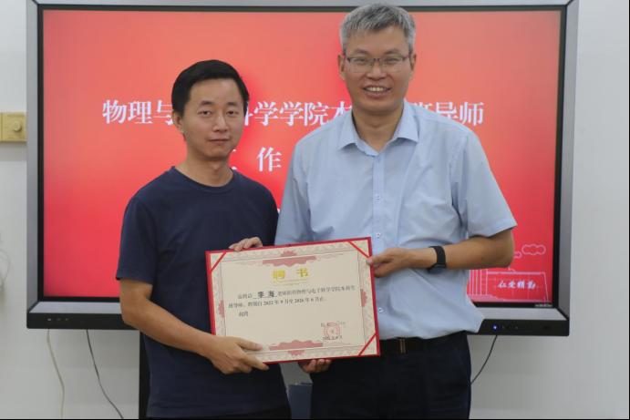 经理唐东升为班导师李海颁发聘书