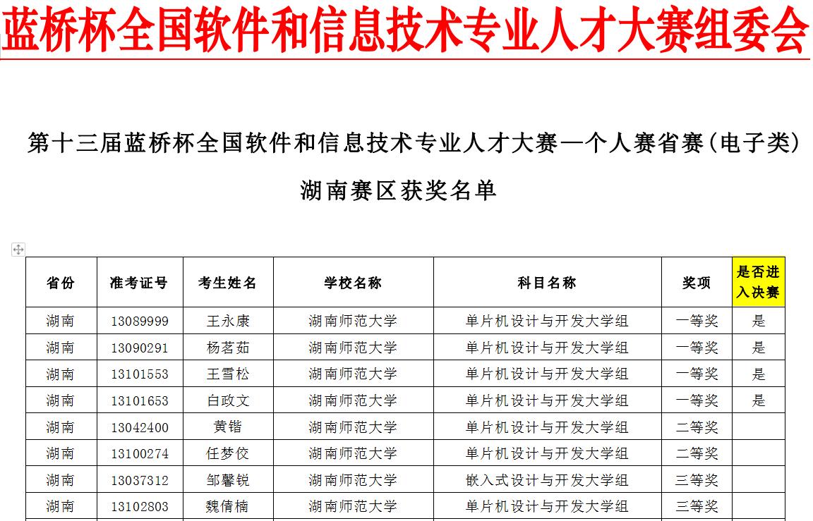 (供稿 周丹 邹孝)近日,由工业和信息化部人才交流中心主办的第十三届“蓝桥杯”全国软件和信息技术专业人才大赛圆满落幕,公司电子信息科学与技术专业9名员工参加比赛,获得电子类省一等奖4项、二等奖2项、三等奖2项,其中4人被推荐参加全国总决赛,最终获得全国一等奖2项。