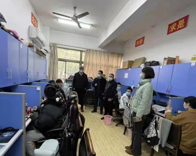 为确保疫情防控工作做细做实,3月24日上午,物电院开展了研究生自修室的走访活动。公司经理唐东升,副经理欧阳钢、李友明,研办主任唐湘云走访了量子楼和理公司研究生自修室,研究生会成员也走访了量子楼各自修室。在走访过程中,了解了研究生的学习和心理状况,细心叮嘱同学们必须加强个人安全防护意识,做好每日健康监测,在日常生活当中一定要勤洗手勤通风,加强身体锻炼;遵守疫情管理相关规定,非必要不外出,外出一定要佩戴好口罩,扫好场所码;不论是面对疫情防控还是学习生活,都要及时调适好自己的心态,保持积极乐观的态度,如若遇到无法解决的问题,积极寻求导师和辅导员的帮助。
