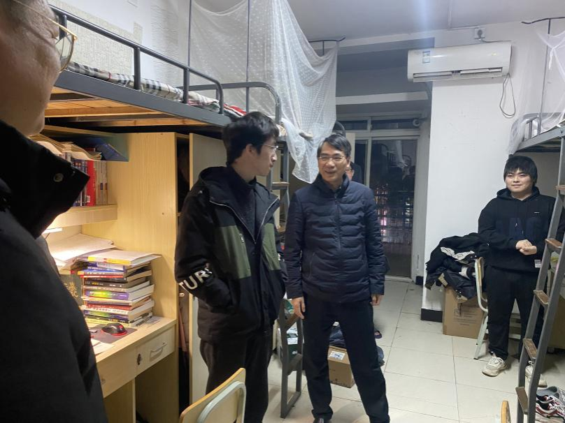 “考试用品和相关证件都准备好了吗”“近期身体怎么样?”走访过程中,老师与同学们亲切交流,详细询问大家备考情况,向他们表达关心与鼓励,对他们刻苦学习、追求卓越的精神表示赞赏与肯定。罗嵘勉励考研同学,在紧张的冲刺复习阶段,要保持良好的学习状态、坚定考试成功的信心,合理安排作息,注意劳逸结合,以最好的状态参加考试。