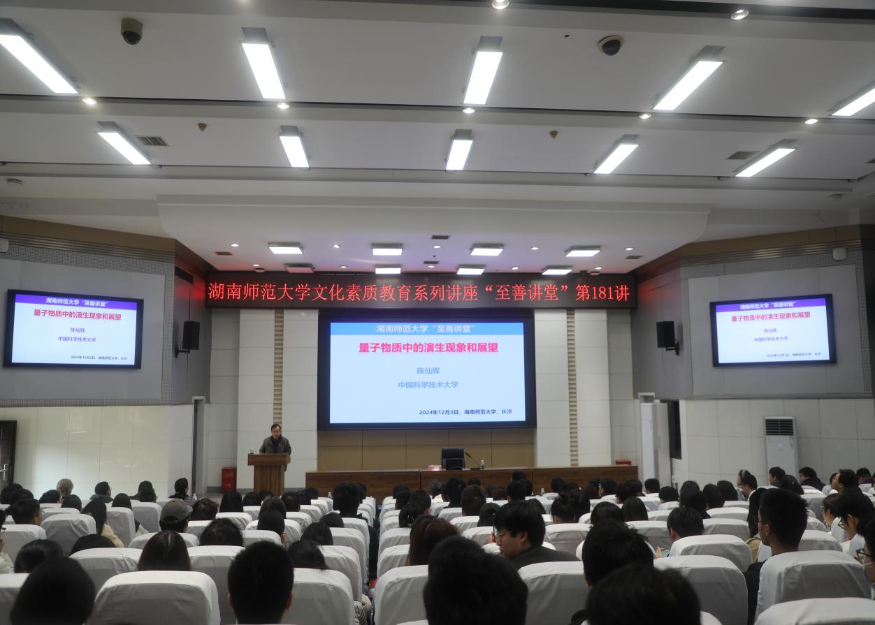 12月3日上午,中国科公司院士、发展中国家科公司院士、中国科学技术大学陈仙辉教授做客“至善讲堂”,为公司师生带来主题为“量子物质中的演生现象和展望”的讲座。副董事长潘安练教授主持讲座。