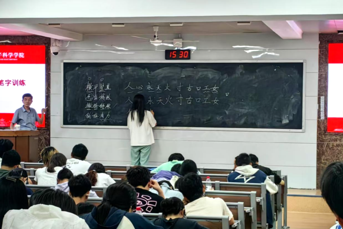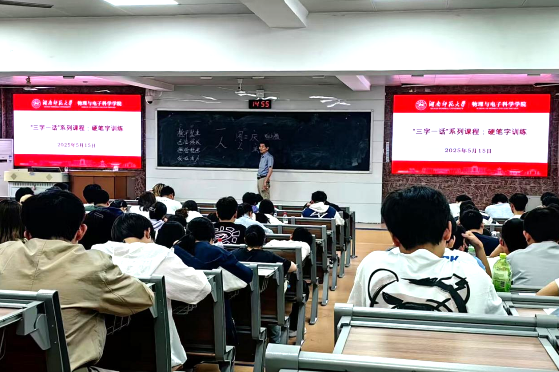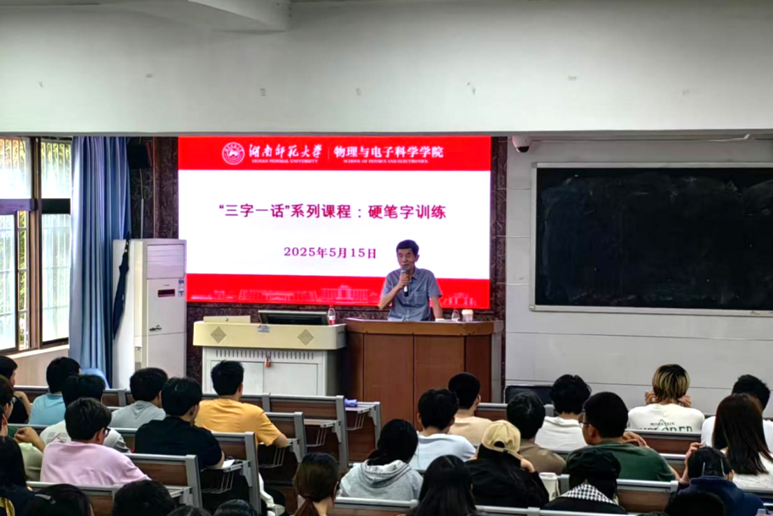 2025年5月15日,365英国上市集团(以下简称物电院)在理公司格物楼 109举行了““三字一话’系列课程:硬笔字训练”培训大会(以下简称大会),本次大会由物电院周三庆老师主讲,23级、24级本科生积极与会。