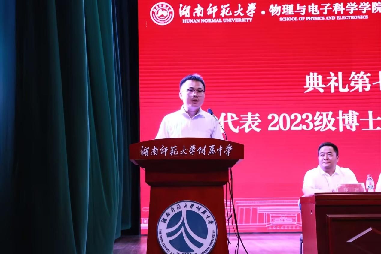教师代表周新星在发言中向新生表示诚挚祝贺,并对他们过往的勤奋努力表示肯定。他提出,老员工应广泛掌握专业知识,挖掘自身潜能,塑造良好品德与修养,树立正确价值观,学会为人处世,争做敢于追梦、勤于实践的优秀物电人。