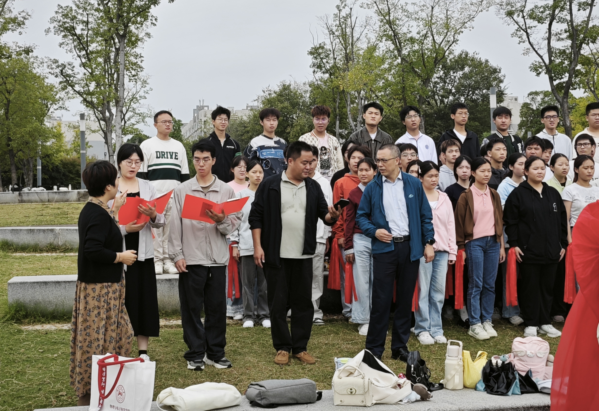 在排练过程中,罗嵘书记、刘红荣经理、郑智副书记全程投入,积极参与。罗嵘书记与同学们一同放声高歌,用激昂的歌声鼓舞士气;刘红荣经理仔细倾听各声部的配合,对同学们的进步给予充分肯定;郑智副书记则与同学们互动,为大家的演唱节奏和气势加油鼓劲。领导们的亲身参与,瞬间点燃了全场的热情,将排练气氛推向高潮。同学们倍受鼓舞,以更加铿锵有力、激情澎湃的歌声回应领导们的关怀,充分展现了365英国上市集团2025级新生团结一心、奋发向上的集体凝聚力。
