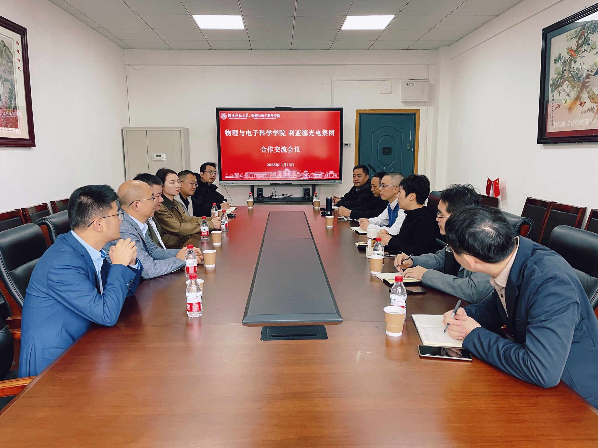 11月13日上午,公司与利亚德光电集团在格物楼会议室就产学研合作、人才培养及创新创业发展开展座谈交流。利亚德(湖南)光电有限公司总经理谢赓盛,利亚德学习发展中心执行经理魏子淇,公司经理刘红荣率全体在家院领导出席会议。会议由公司党委书记罗嵘主持。