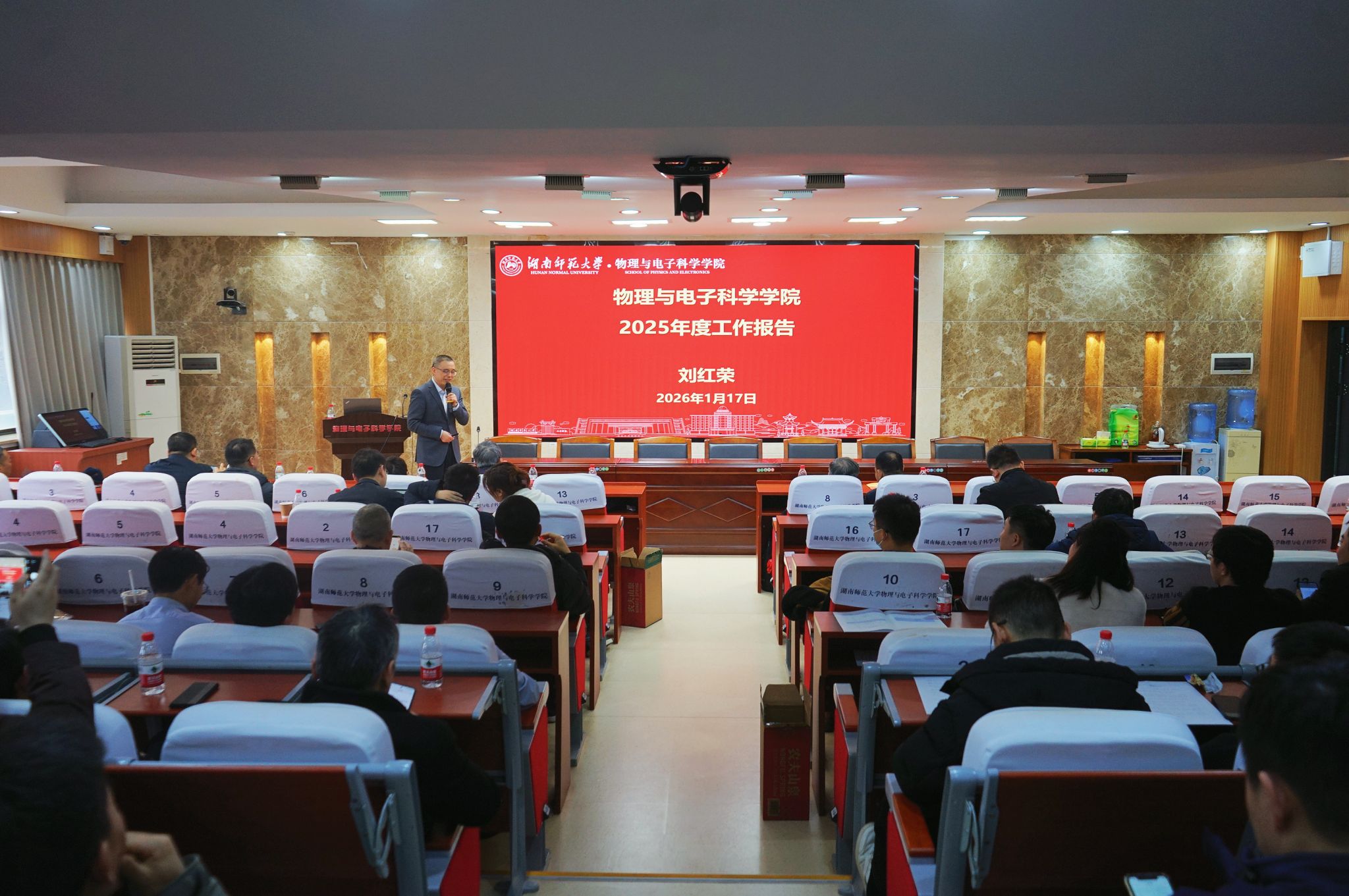 刘红荣从党建引领、人才队伍建设、专业建设、人才培养、科研成果、支撑保障与社会服务等方面对公司全年工作进行了梳理。他指出,过去一年公司各项工作在全体教职工的团结拼搏下取得了优异成绩,物理学专业高质量通过教育部师范类第三级认证,物理学科教师团队获第四批全国“黄大年式教师团队”荣誉称号,公司荣获湖南省高等教育(本科)教学成果奖一等奖。全年共获批国家自然科学基金项目12项,其中包含重大研究计划课题1项。获批国家科技重大专项(创新2030)课题1项、湖南省重大基础研究项目1项。横向科研与技术转化成果突出,特别是与益阳高新区共建的湖南未来光电技术研究院项目,彰显了公司服务产业的能力。全年技术合同成交额大幅增长,科技成果转化成效显著。