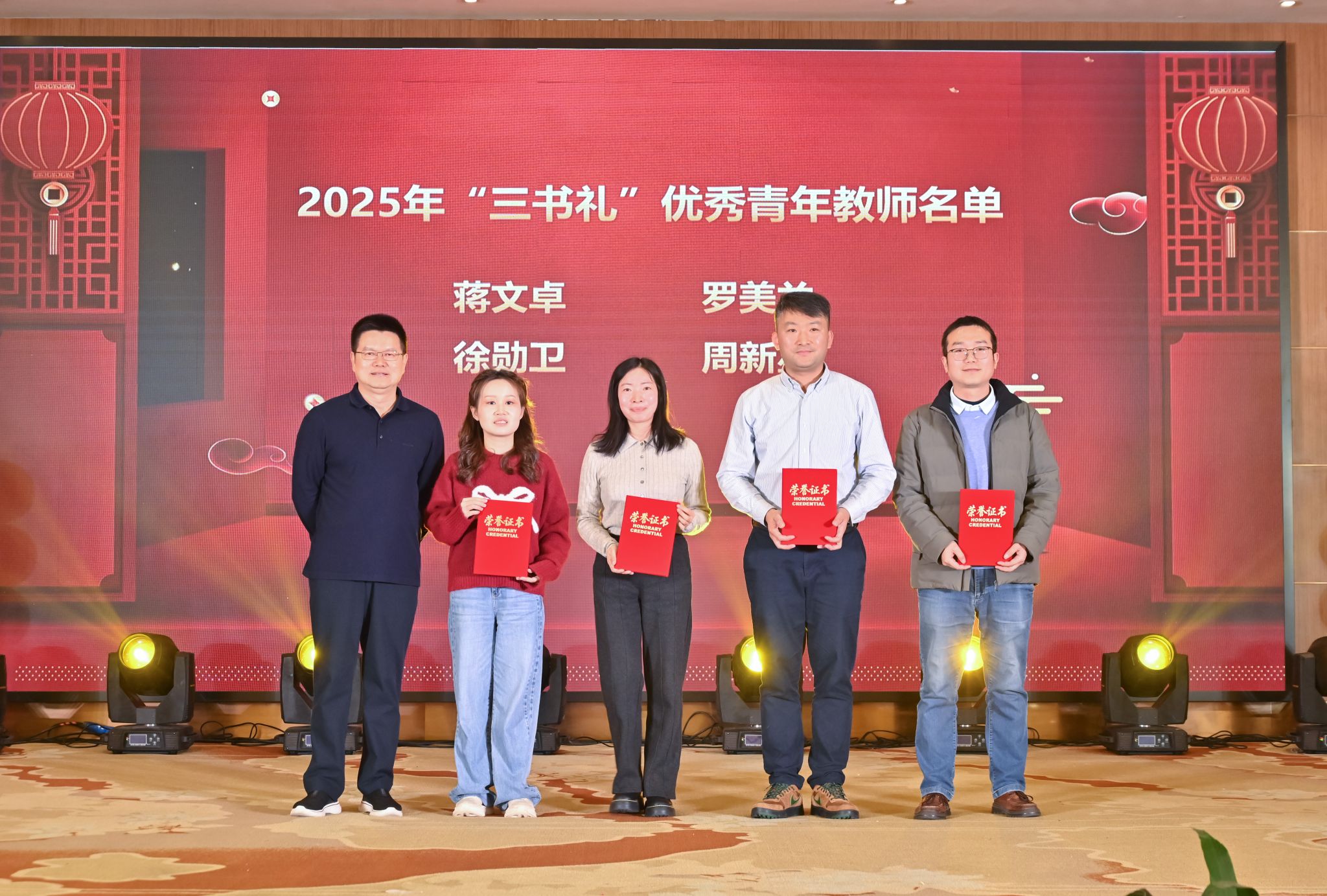 “三书礼”颁奖环节庄重而热烈。匡乐满副董事长、潘启沅副经理、苏文华董事长为获评“三书礼”青年教师教学竞赛一等奖、青年教师教学竞赛新秀一等奖、优秀青年教师奖的13位老师颁奖,罗美兰、邓泽辉、蒋文卓等老师依次上台领奖。这场颁奖既是对教师教学匠心的肯定,也彰显了校企携手助力教育发展、共促青年教师成长的深厚情谊,现场掌声经久不息。