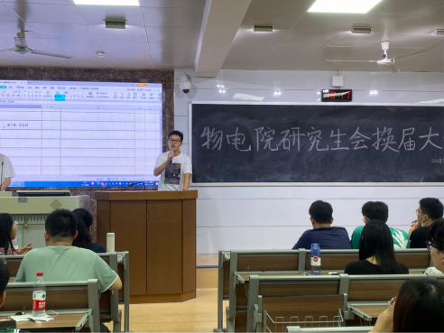 (供稿人温文玉)2021年9月24日晚,物电院研究生会换届大会在理公司109教室召开。全体2021级研究生和2020级研究生会成员参加了此次换届大会,会议由研究生会主席马前春主持。