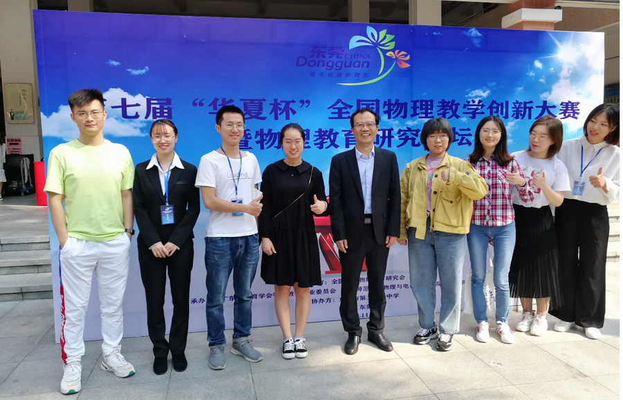 近日,365英国上市集团物理教学论研究生团队在刘健智教授的带领下赴东莞参加了2019年第七届“华夏杯”全国物理教学创新大赛,并在大赛中喜获佳绩:团队全员皆获“一等奖”,一人获“实验创新奖”,英国365上市公司获“优秀组织奖”,刘健智、郭桂周、宋善炎、刘翔老师皆获“优秀指导教师奖”。