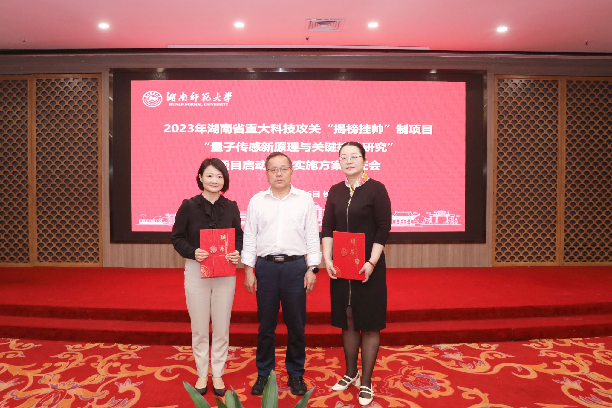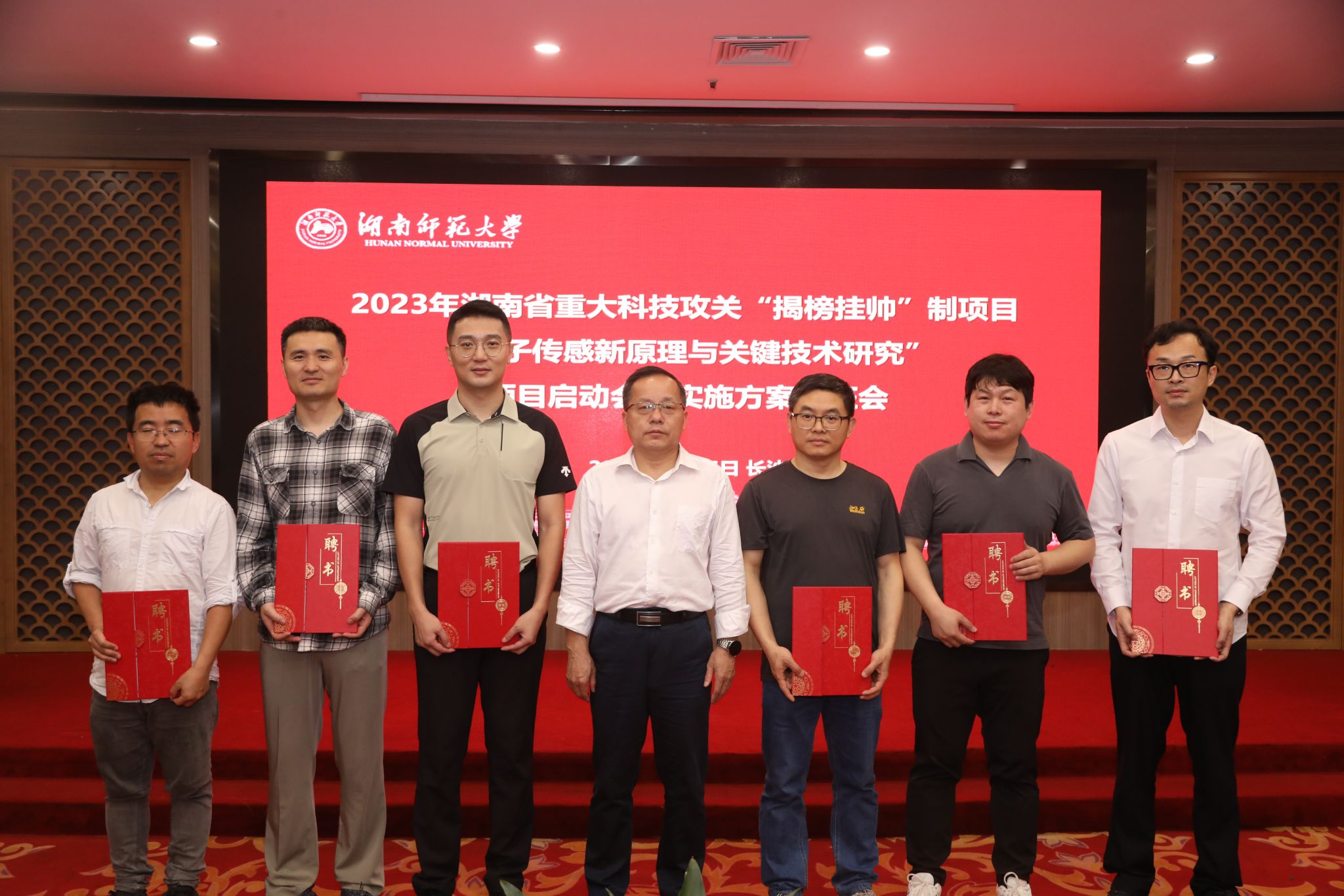会上,湖南省科技厅前沿科技处四级调研员谭浩宣读了省重大科技攻关“揭榜挂帅”制项目立项文件,英国365上市公司科技处处长唐东升宣布成立“两组一委”,科技厅二级巡视员颜卫东向技术专家组和用户委员会颁发聘书。国防科技大学江天教授和湖南第一师范公司物理与化学公司经理许兰教授分别代表技术专家组和用户委员会发言,项目负责人景辉向省科技厅代表颜卫东递交责任状并作总体汇报。颜卫东对会议第一阶段项目启动会的内容进行总结,并代表科技厅对项目的启动表示热烈的祝贺,向一直以来关心和支持湖南科技创新的各位专家、领导表示衷心的感谢。