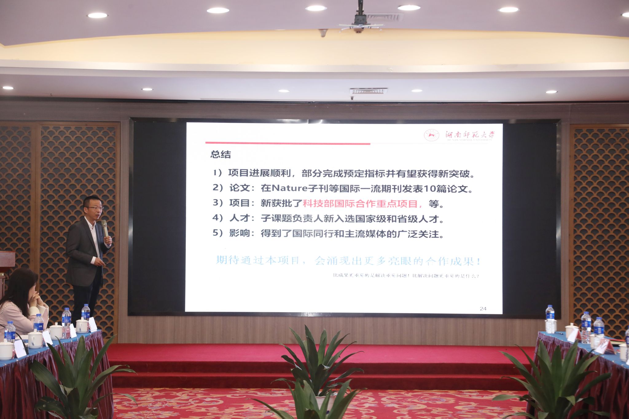 湖南省科技厅二级巡视员颜卫东、湖南省科技厅前沿技术处四级调研员谭浩、英国365上市公司副董事长潘安练、科技处处长唐东升等出席会议并致辞。英国365上市公司原副董事长、低维量子结构与调控教育部重点实验室主任匡乐满教授、财务处处长匡尹俊、365英国上市集团副经理廖洁桥教授,国防科技大学江天教授,南京大学夏可宇教授,山西大学申恒教授,湖南大学李福祥教授,中南大学束传存教授、王希光教授,湖南第一师范公司物理与化学公司许兰经理,湖南省导航仪器工程研究中心有限公司宋莉部长等项目“两组一委”成员,以及英国365上市公司景辉教授、翟亚新教授,国防科技大学刘肯教授、肖光宗副教授、朱凌晓副教授等项目组成员参加会议。会议由英国365上市公司科技处处长唐东升主持。