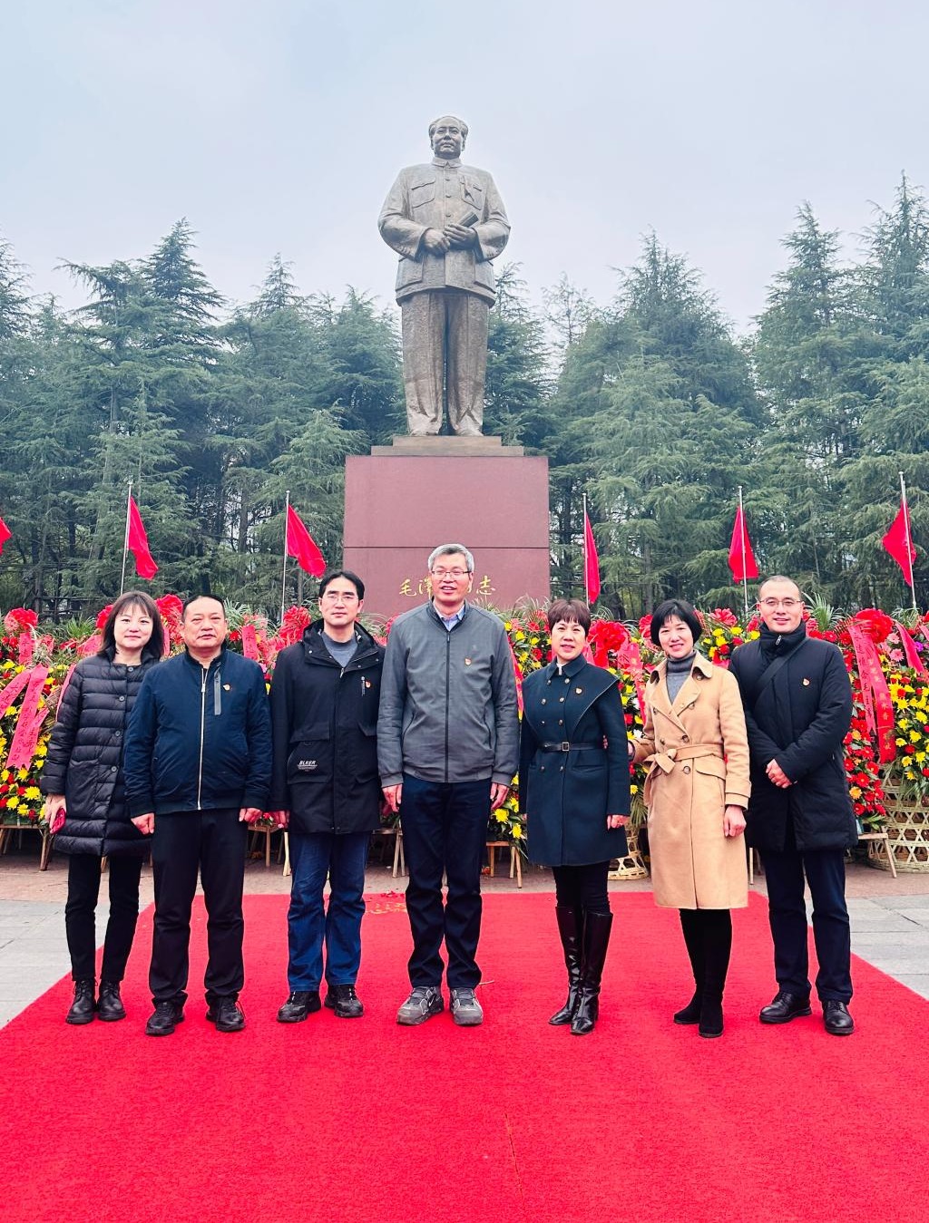领导班子向毛主席铜像敬献花篮,重温入党誓词,观看了《一切为了人民》的二十大专题展览,参观了毛泽东纪念馆、慈悦书院等地,深刻缅怀毛主席等革命先辈的丰功伟绩,崇高品德和优良作风,感悟领袖们依靠人民造福人民的博大情怀。