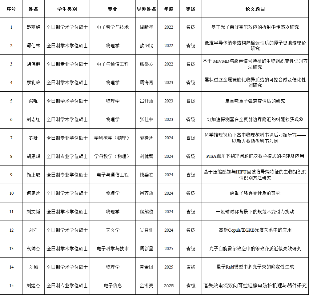 2022-2025年获湖南省优秀硕士学位论文名单